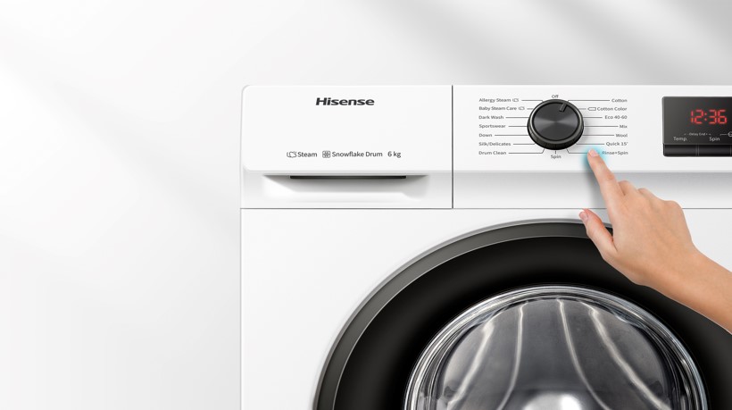 El lavado rápido de Hisense es perfecto para lavar cargas de hasta 1 kg con un lavado rápido de 15 minutos.
